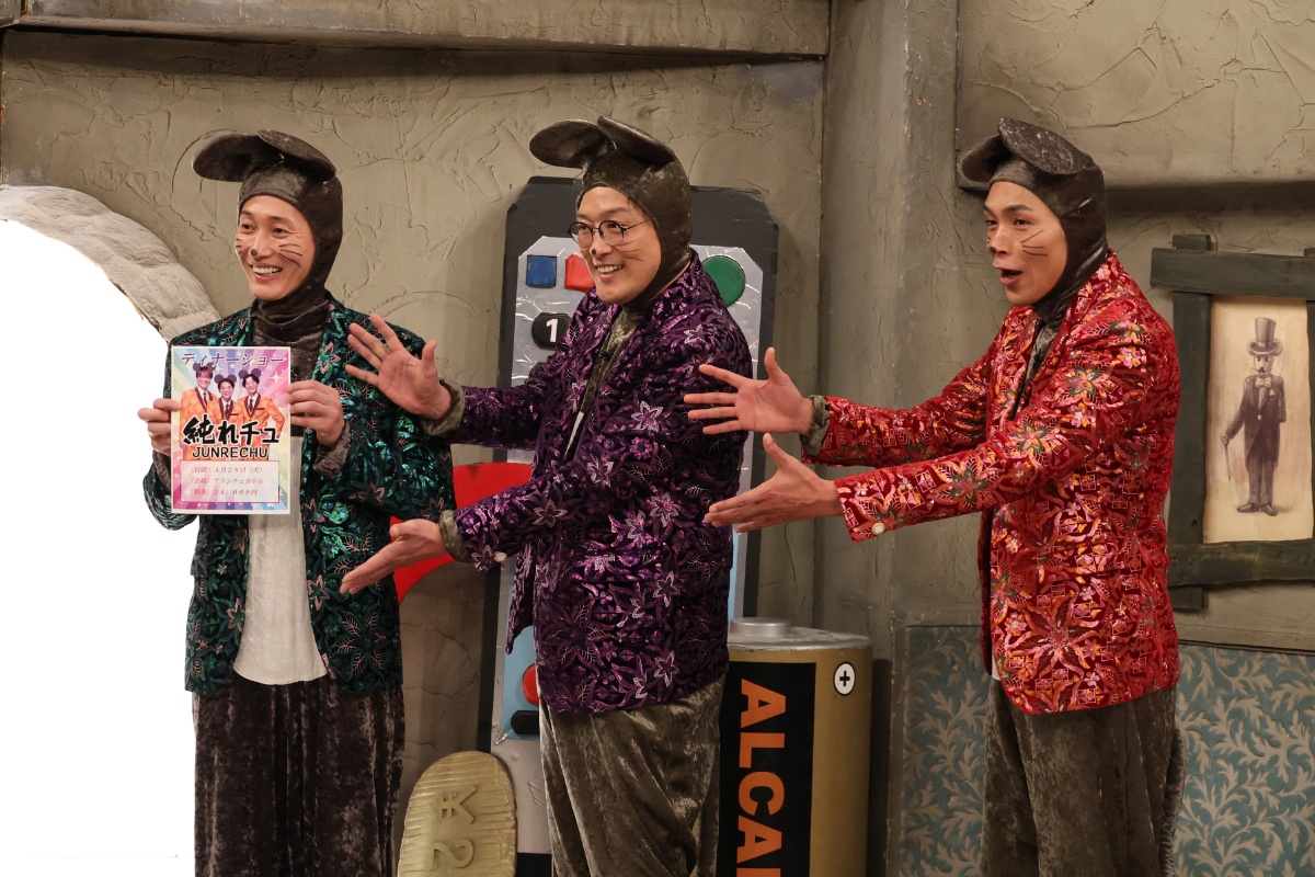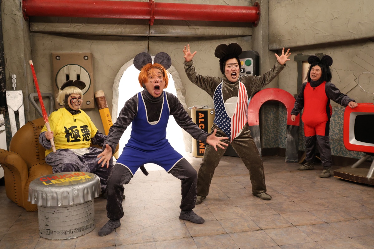 今年のコント祭りは、プロレスラー、アイドル、ロックバンド、声優、歌謡スターと、かつてないほどバラエティに富んだゲストが目白押しです。ダンプ松本とゆりやんレトリィバァによる「極悪ねずみ同盟がやって来た!」、大人気アイドル超特急がレジェンドアイドル“マッチュ”と共演する「チュー特急がやって来た!」、綾小路翔率いる氣志團がヤンキー魂をぶつける「氣志チューがやって来た!」。さらに、爆チュー問題の大ファンである人気声優・花澤香菜が夢を叶える「人気声優 花澤香菜チューがやって来た!」、純烈と永野がディナーショーを懸けて対決する「純れチュと永野チュー次郎がやって来た!」など、各ゲストの持ち味を活かしきった予測不能な展開が待ち受けています。