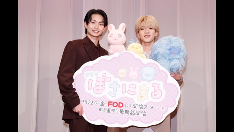 FODにて、9月22日(金)0時に配信開始するドラマ『ぼさにまる』の制作発表会を開催し主演の“ぼさうさ”のさくら、綱啓永、森愁斗が登壇しました。また、ドラマのエンディング曲は“そらる”がキャラクターとして歌い、劇伴はRAM RIDERが担当します。