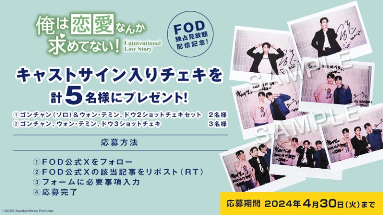 韓国ドラマ『俺は恋愛なんか求めてない』のFOD独占見放題配信を記念して、FOD公式Xにてプレゼントキャンペーンを実施中!