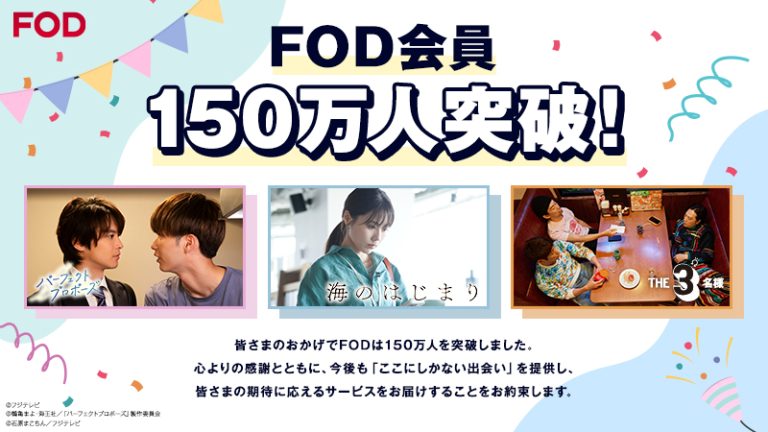 最近では2024年7月クールドラマ『海のはじまり』、『新宿野戦病院』など地上波ドラマの見逃し配信が大ヒット。さらにオリジナル作品ではFODオリジナルドラマ『パーフェクトプロポーズ』(2024年2月配信)や『THE3名様Ω』(2024年5月配信)が視聴を伸ばしました。