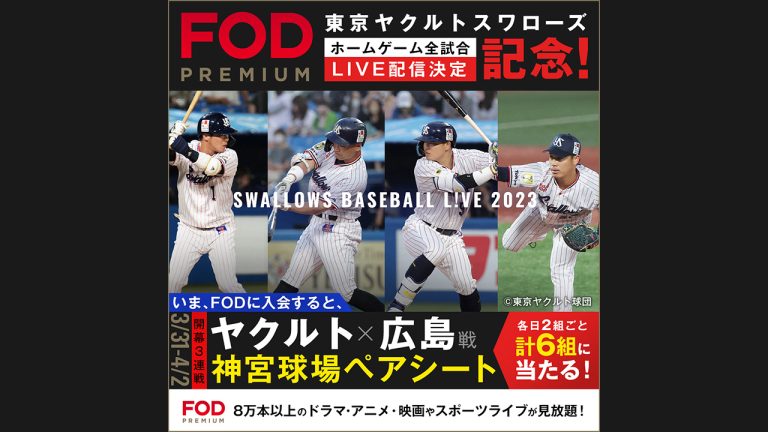 FODにて、2023年東京ヤクルトスワローズのオープン戦と公式戦のホームゲーム全試合をLIVE配信中!
