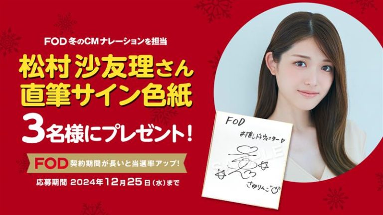 今回、キャンペーン新CMのナレーションを担当した松村沙友理さんの直筆サイン色紙を3名様にプレゼントいたします!