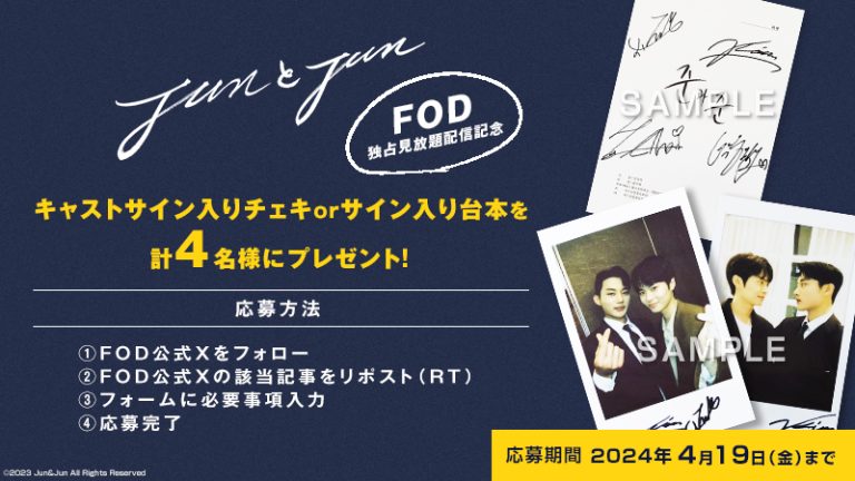 韓国ドラマ『JunとJun』のFOD独占見放題配信を記念して、FOD公式Xにてプレゼントキャンペーンを実施中!
