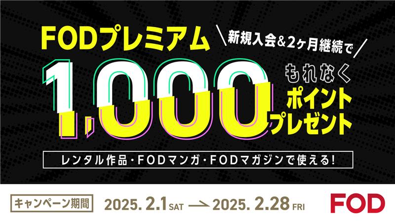 FOD【入会&継続】キャンペーン開催!2ヶ月連続継続で1000ポイントプレゼント!