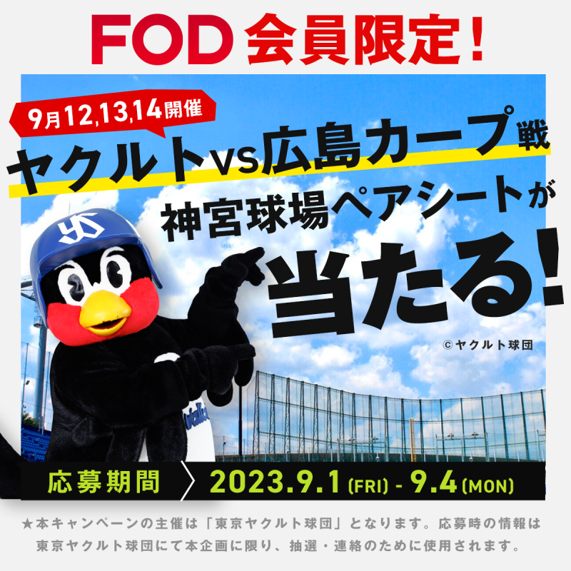 FODにて配信中の「東京ヤクルトスワローズ」主催の全72試合のLIVE配信『SWALLOWS BAS […]