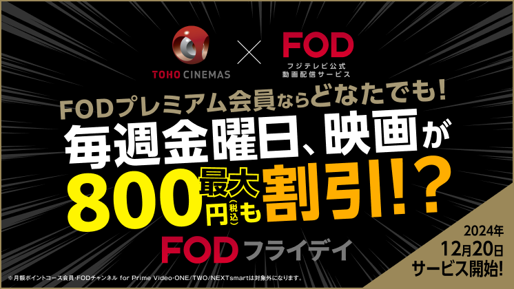 TOHOシネマズ×FOD“FODフライデイ”スタート!金曜日は映画が1,200円に!